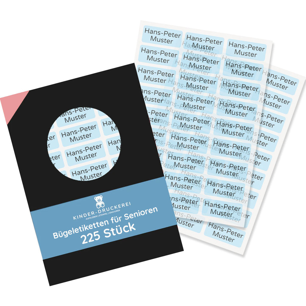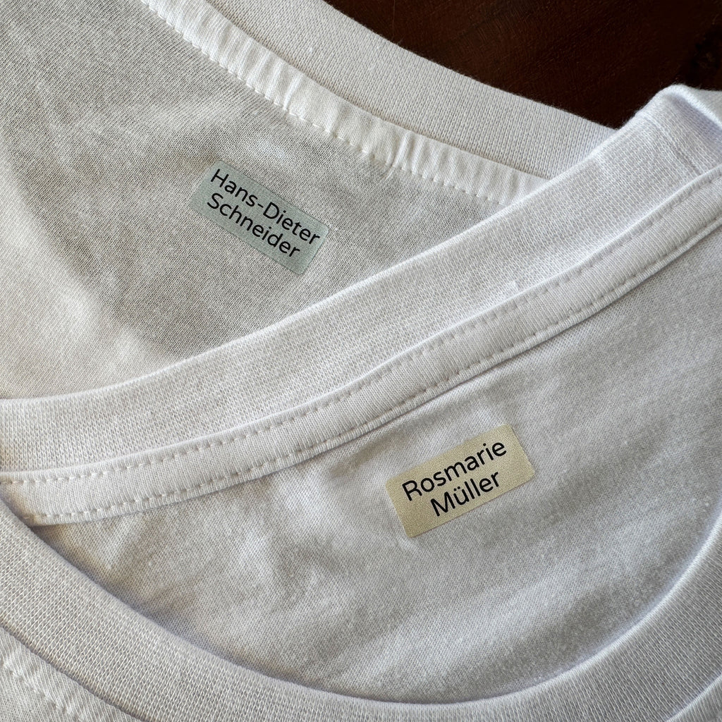 Our 225 Iron-On Labels for Seniors (30x13 mm) are the ideal solution for permanent marking of clothing in nursing homes and care facilities. Thanks to high-quality, durable material and simple application through ironing on, each iron-on label for seniors remains securely attached even after frequent washing.