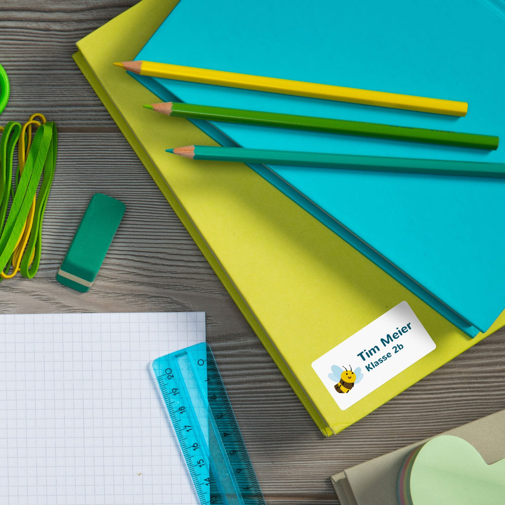 They help prevent mix-ups in school, kindergarten or daycare. With the labels you can mark school notebooks, books, drinking bottles and other items – quickly and easily.