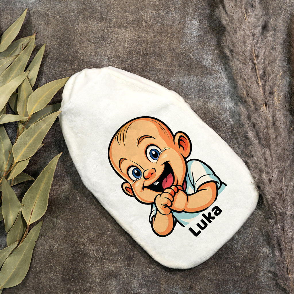 This personal hot water bottle 🔥 brings not only soothing warmth, but also a smile to your face! Simply upload your photo 📸 – we transform it into a lovely caricature ✏️, which is printed together with your custom text on the soft cuddly cover. This makes your hot water bottle a truly special one-of-a-kind item.