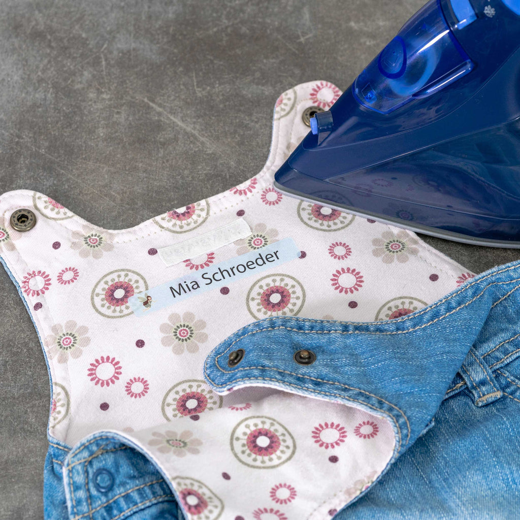 Iron-on labels for children are the perfect solution for anyone looking for a simple and practical way to label their children's clothing. With the iron-on labels, you can easily and quickly label and mark your children's clothing. The iron-on labels are waterproof and heat resistant up to 95 degrees. They are therefore ideal as name labels for school and kindergarten. Thanks to the high-quality materials, the iron-on labels also withstand washing machines and dryers.