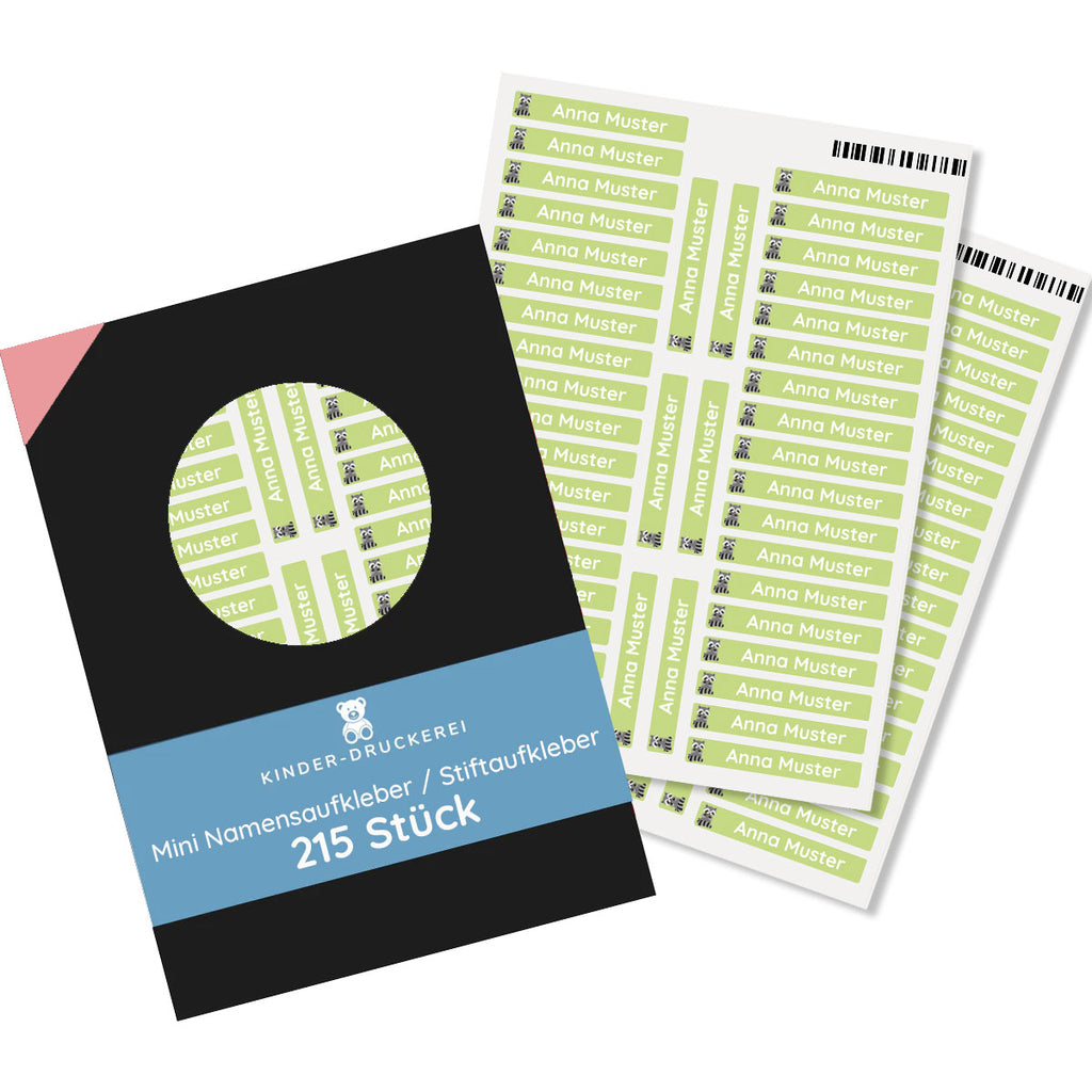 You will find personalized name labels here with a cute children's design and an individual name. They are practical for daycare, kindergarten or school. With our design tool you can