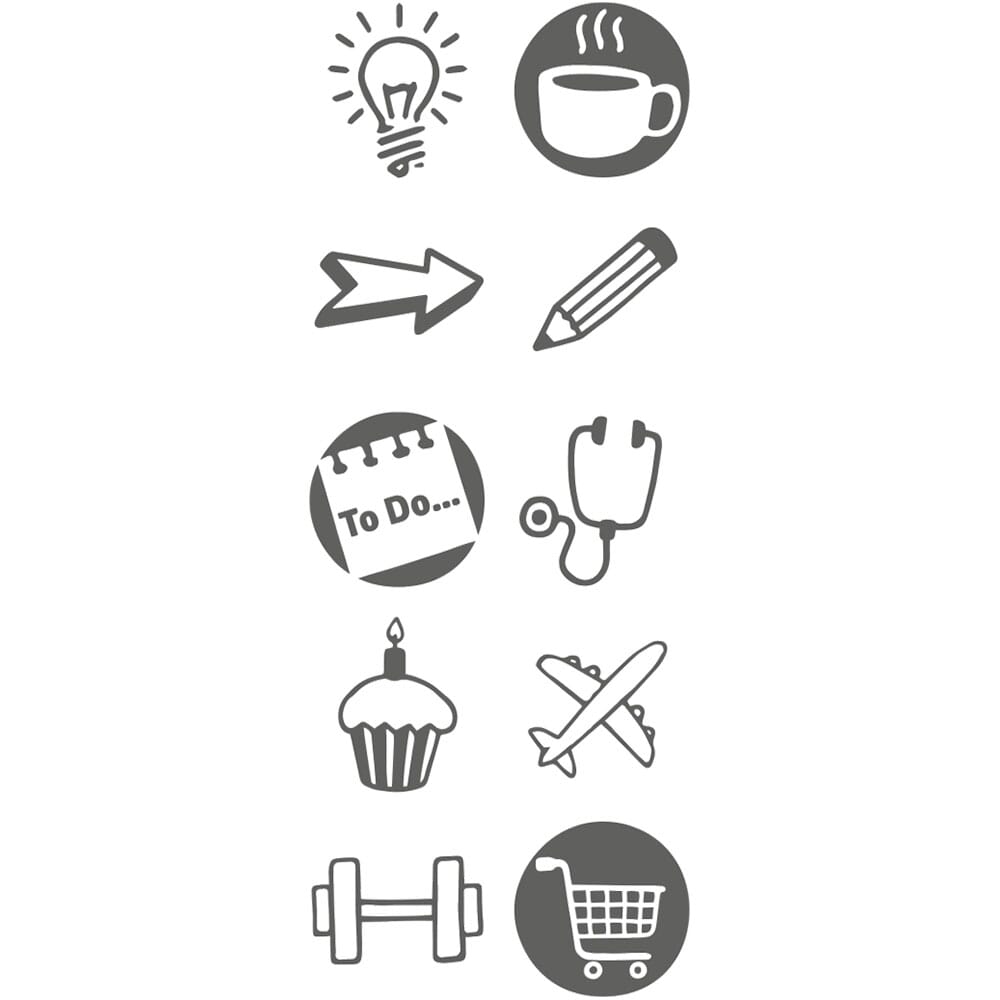Cet ensemble contient 10 plaques de tampon différentes assorties au thème du Bullet Journal, il suffit de les changer