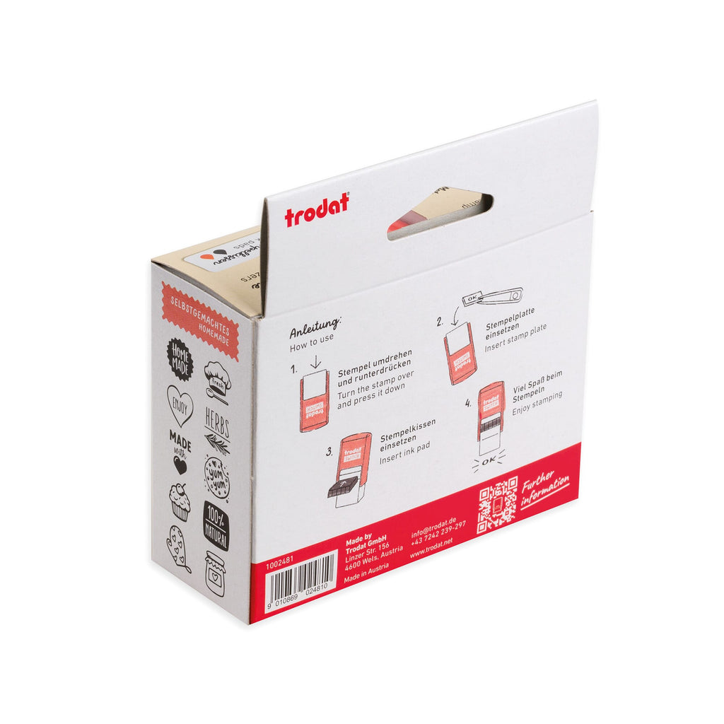 Avec le kit de tampons Trodat Switch Fait maison, tu peux personnaliser élégamment tes créations DIY, tes cadeaux et tes travaux manuels. Qu'il s'agisse de friandises faites maison, de cadeaux emballés avec amour ou d'œuvres d'art faites à la main – avec les motifs de tampons créatifs, tu crées des accents uniques et donnes une touche personnelle à tes créations.