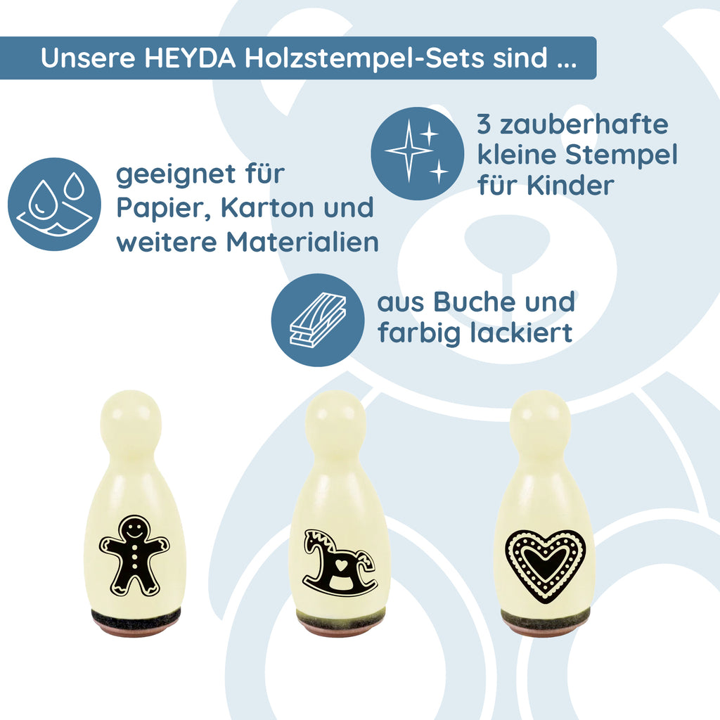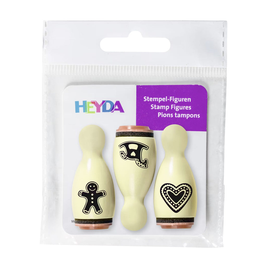HEYDA Holzstempel-Figuren Set "Weihnachtsmotiv Lebkuchen" – Creme (3 Stück - Ø 12 mm)