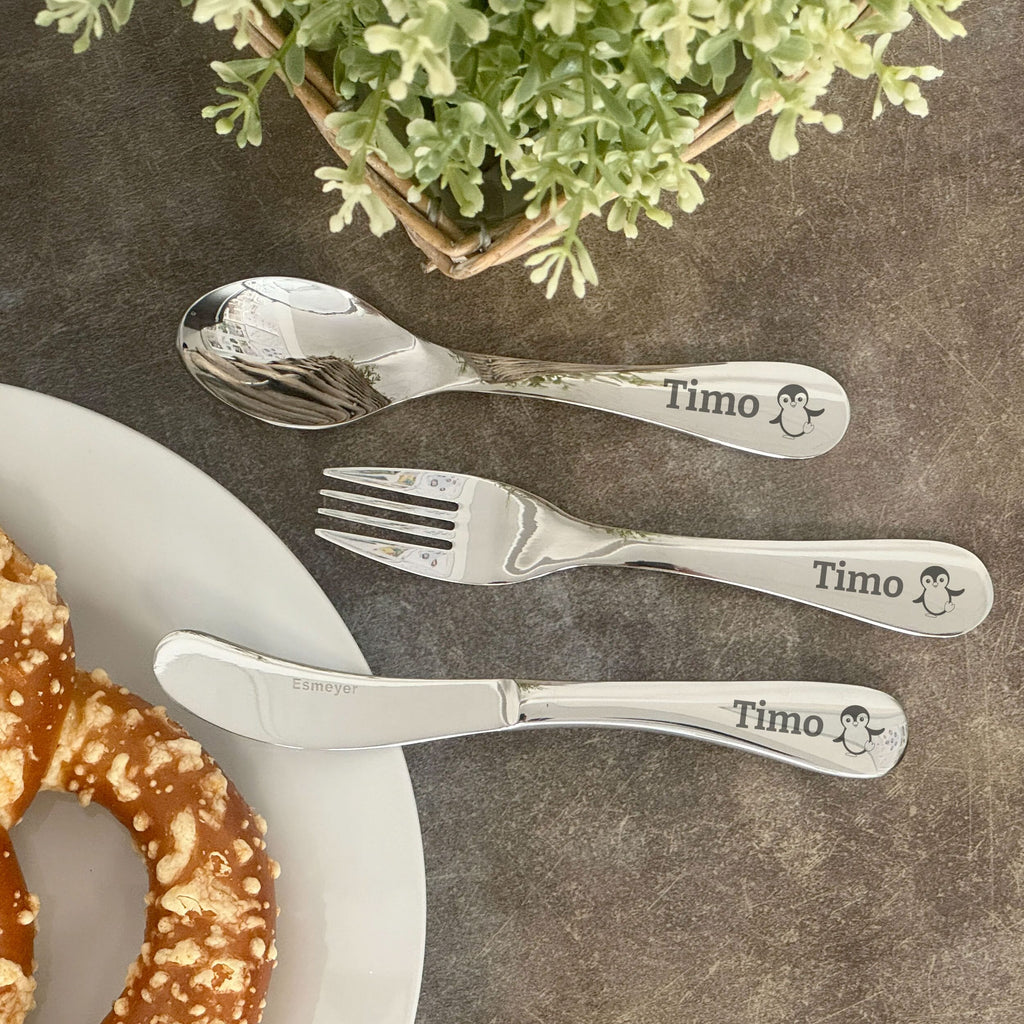 Wunderschönes Kinderbesteck mit Ihrer ganz persönlichen Gravur. Nicht nur ein absolut tolles Geschenk zur Geburt oder Geburtstag, auch für den eignen Gebrauch.
