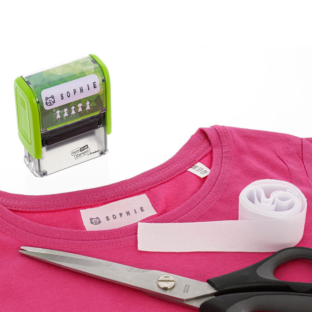 - Stempeln Sie den Namen Ihrer Kinder direkt in die Kleidung, etikettieren Sie mit den Namensaufklebern Trinkflasche, Brotdose, Handyhülle uvm. – ideal für Schule und Kindergarten